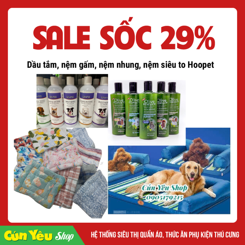 - GIẢM NGAY 29% ĐỐI VỚI Dầu tắm/ Nệm Nhung/ Nệm Gấm/ Nệm siêu to Hoopet.