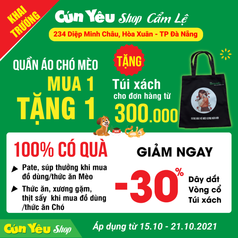 Mừng Khai Trương Giảm giá và Ưu Đài Ngập Tràn Tại Cún yêu SHop 234 Diệp Minh Châu, Cẩm Lệ, Đà Nẵng